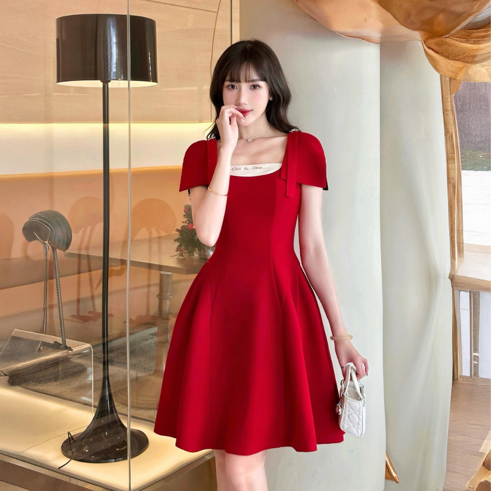 Lindsey เดรสสั้นทรงเอไลน์สีดำและแดงชุดเดรสเหนือเข่าชุดเดรสปาร์ตี้สุดหรูสำหรับผู้หญิง