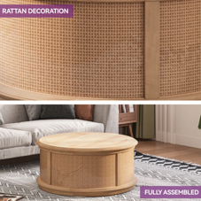 ชั้นวางกลองหวายทรงกลมดีไซน์หรูหราทันสมัยโต๊ะกาแฟทำจากไม้เนื้อแข็ง