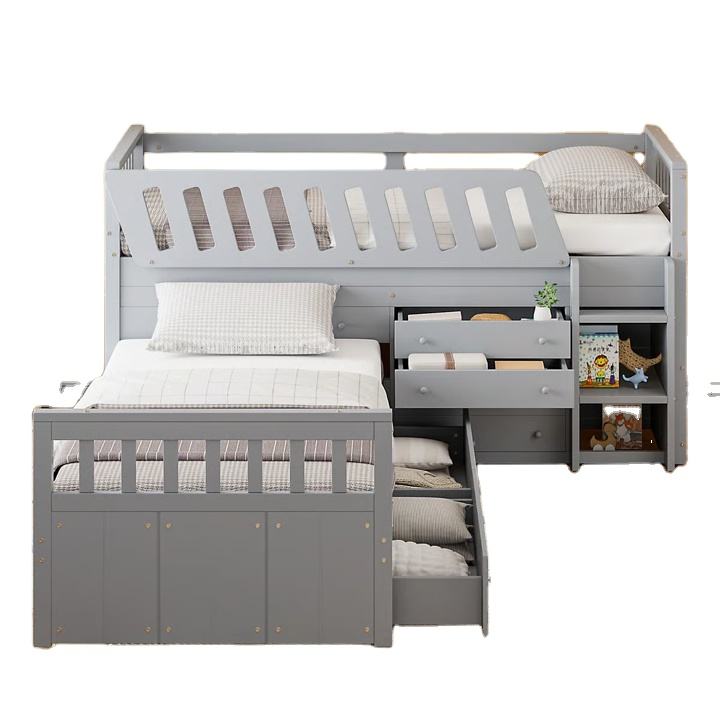 Lineage Corporation เตียงแฝดแบบ2ลิ้นชัก, เตียงสองชั้นสามชั้นเตียงทำจากไม้เนื้อแข็งเฟอร์นิเจอร์ห้องนอนที่เก็บของประหยัดพื้นที่