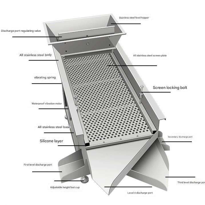 เครื่องคัดแยกแบบสั่นสะเทือนชนิดเส้นตรง 3 ช่องจ่าย สำหรับเมล็ดกาแฟ ทราย กรวด เม็ดพลาสติก อาหารสัตว์ ถั่ว ผลไม้ งา