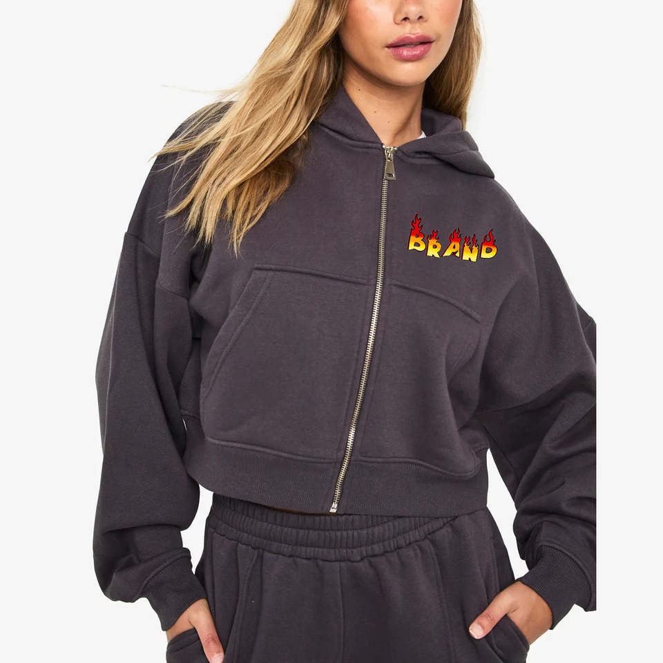 เสื้อแจ็คเก็ตขนแกะผู้หญิงแบบมีฮู้ด สวมใส่สบาย อุ่น นุ่ม ฟู ทรงปกติ สำหรับฤดูใบไม้ร่วง เป็นมิตรกับสิ่งแวดล้อม กันลม มีกระเป๋าโลโก้ด้านหน้า