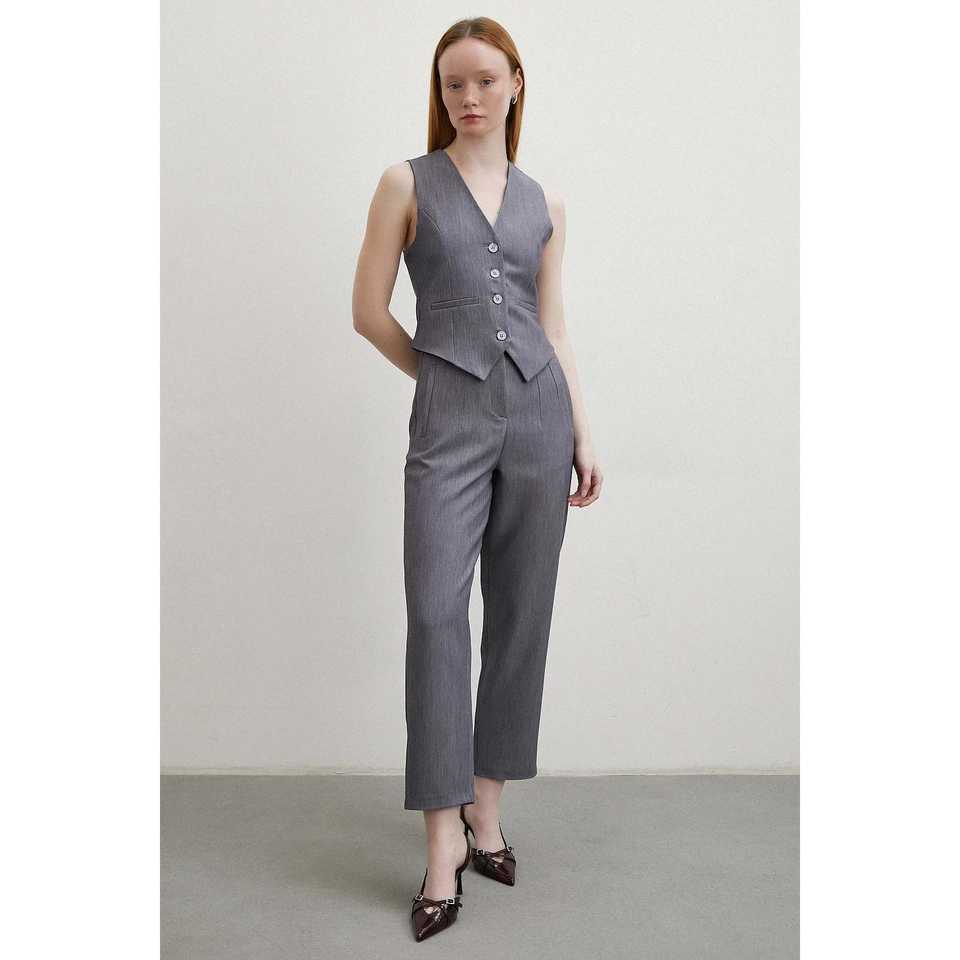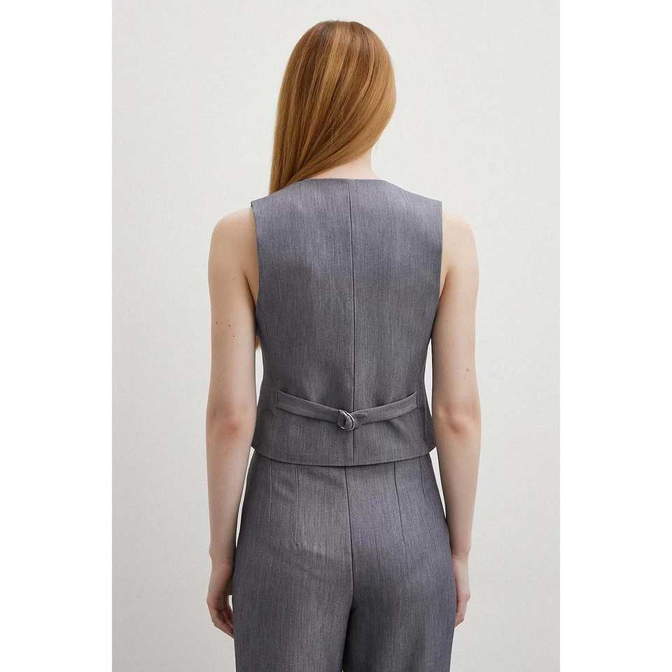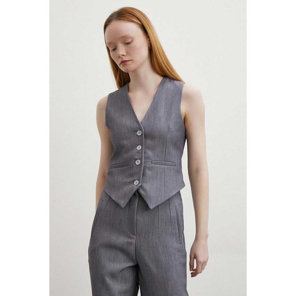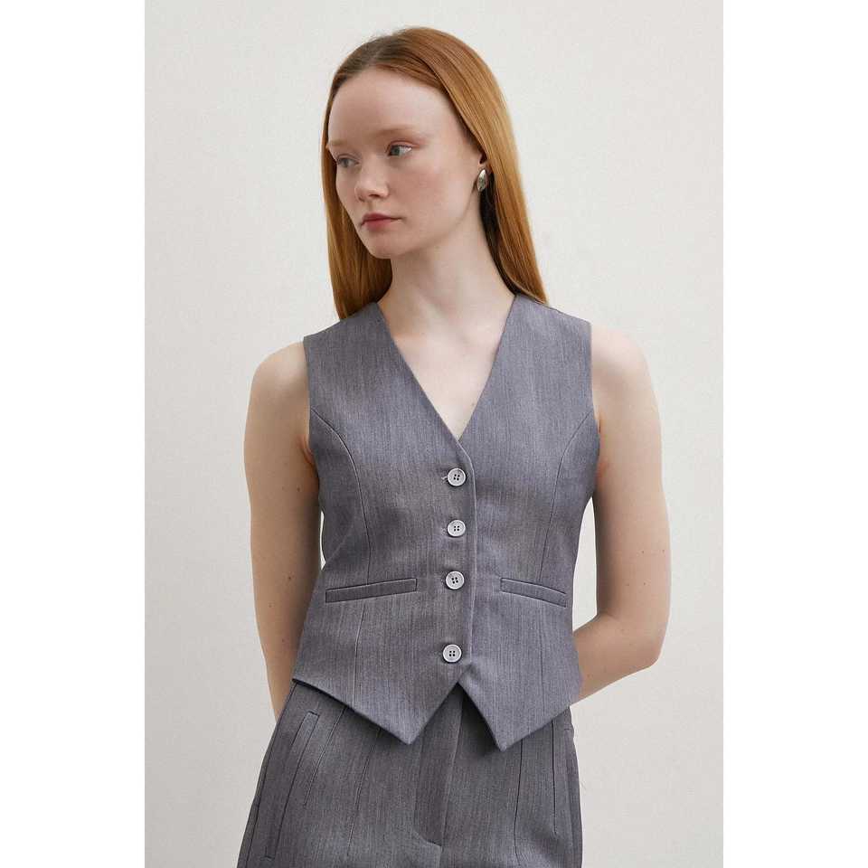 เสื้อกั๊กแบบมีโครงเสริมทรงสำหรับผู้หญิง ผ้าวอร์สเตดสีแอนทราไซต์ ใช้สำหรับใส่กับชุดสูท