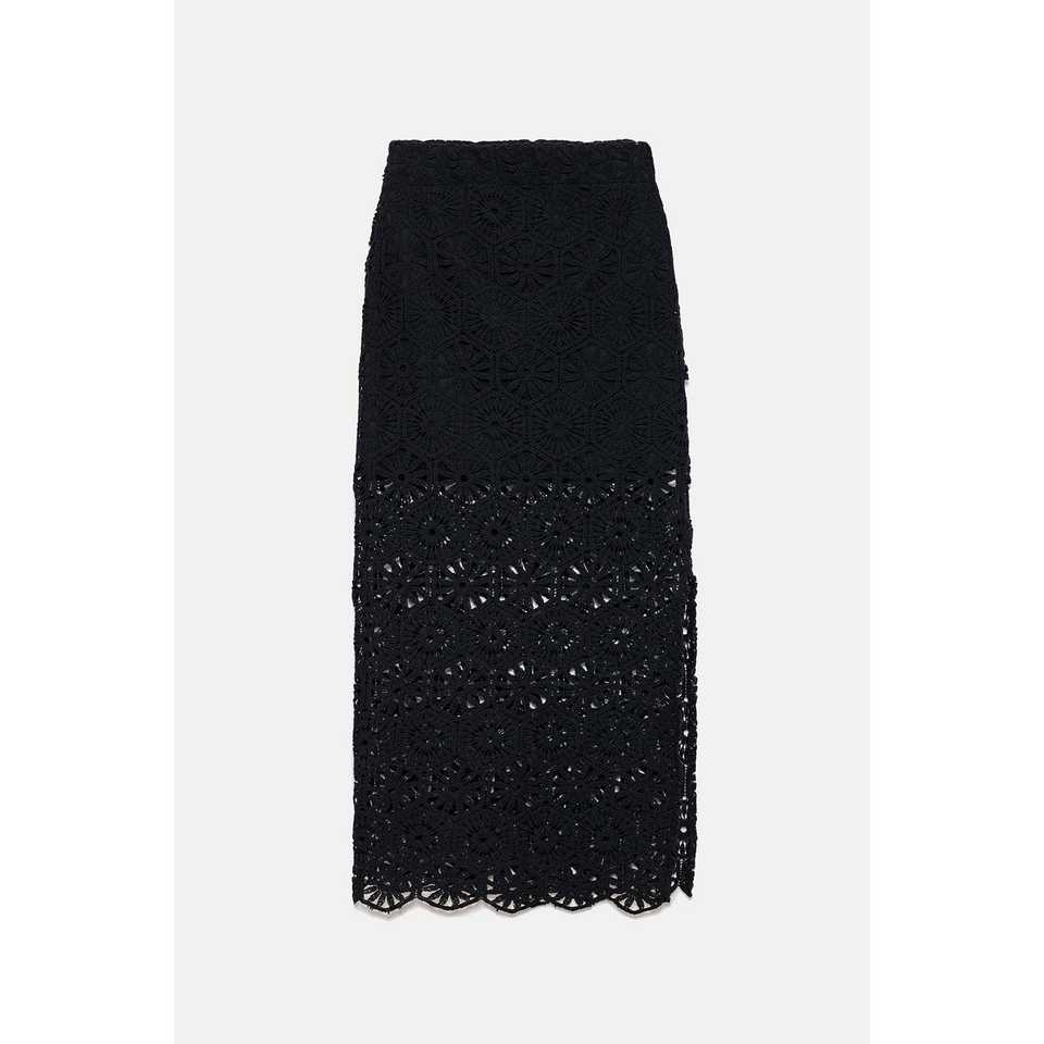 กระโปรงลูกไม้ลายลูกไม้ยาวปานกลาง