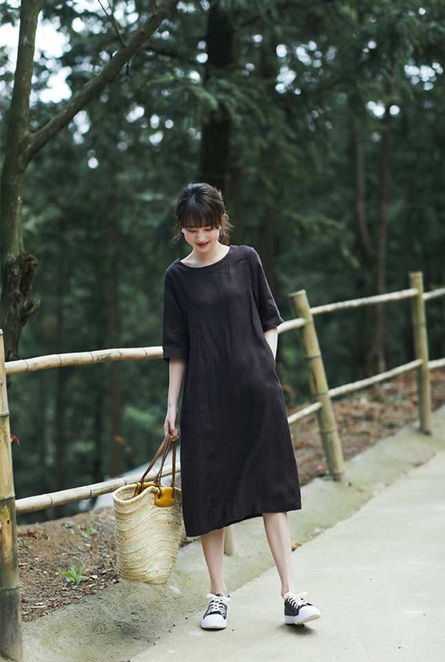 ชื่อผลิตภัณฑ์:ชุดคลุมเข่าผ้าลินินเดรสคาฟตัน
