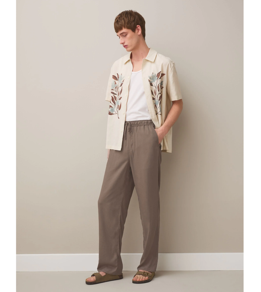 กางเกงขายาวผู้ชายผ้าลินินผสมฝ้าย ทรงตรง ใส่สบาย ระบายอากาศได้ดี เป็นมิตรกับสิ่งแวดล้อม แห้งเร็ว น้ำหนักเบา เอวยางยืด ปิดด้วยซิป