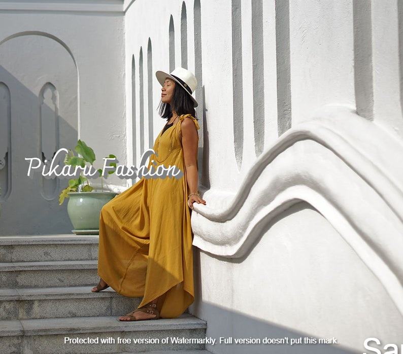 ชุดจั๊มสูทผ้าลินินผ้าฝ้ายคอวีแขนกุดสำหรับผู้หญิง,ชุดเดรสยาวสำหรับฤดูใบไม้ร่วงหนึ่งชิ้น
