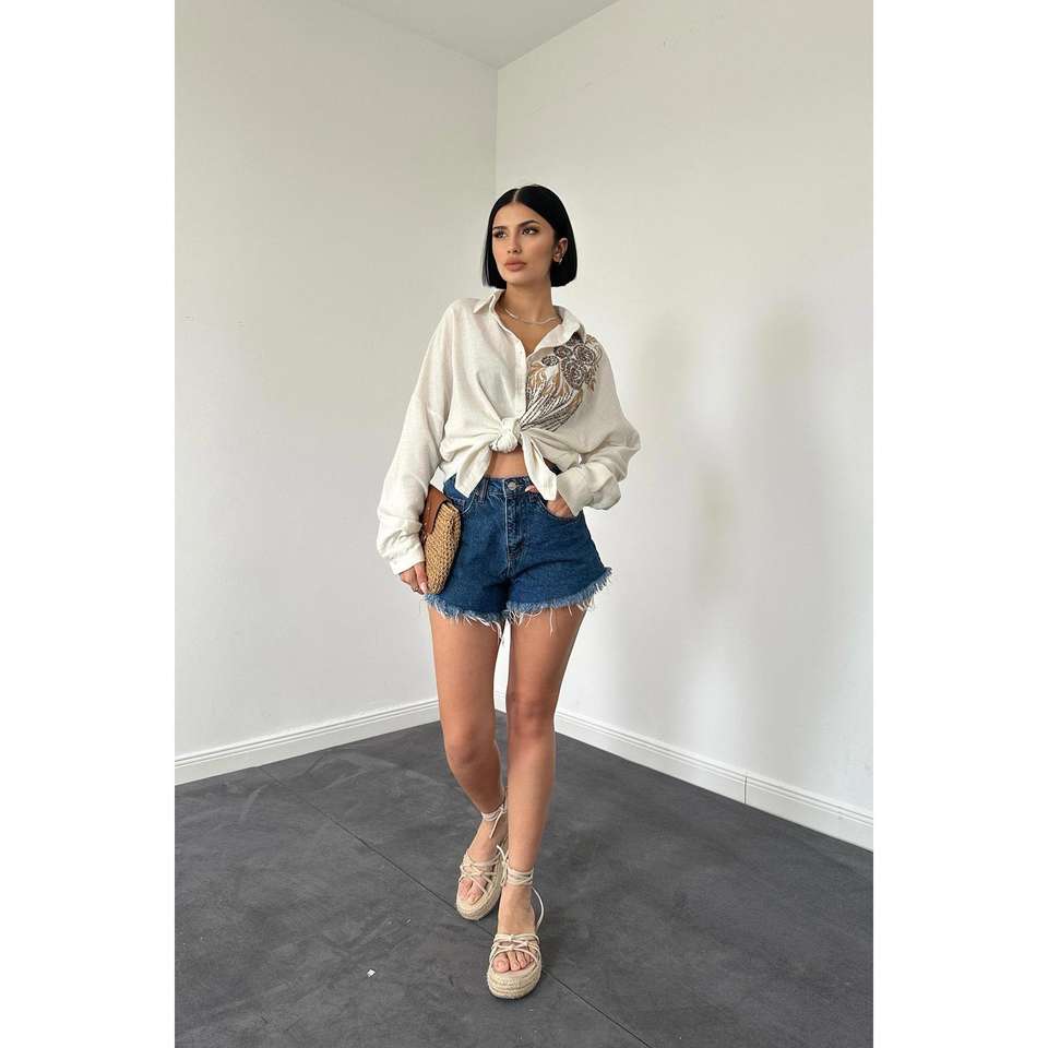 เสื้อเชิ้ตผ้าลินินแบบครอปตัวสั้นติดกระดุมสำหรับผู้หญิง สวมใส่สบายๆ ทุกวัน สีผสม ไซส์เดียว