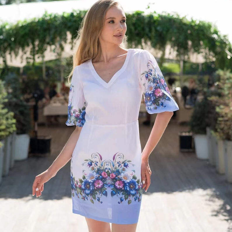 เดรสผ้าลินินดีไซเนอร์พิมพ์ลายดอกไม้ไม่ซ้ำใครเหมาะสำหรับการล่องเรือโรแมนติกชุดเฉลิมฉลองในโอกาสพิเศษ