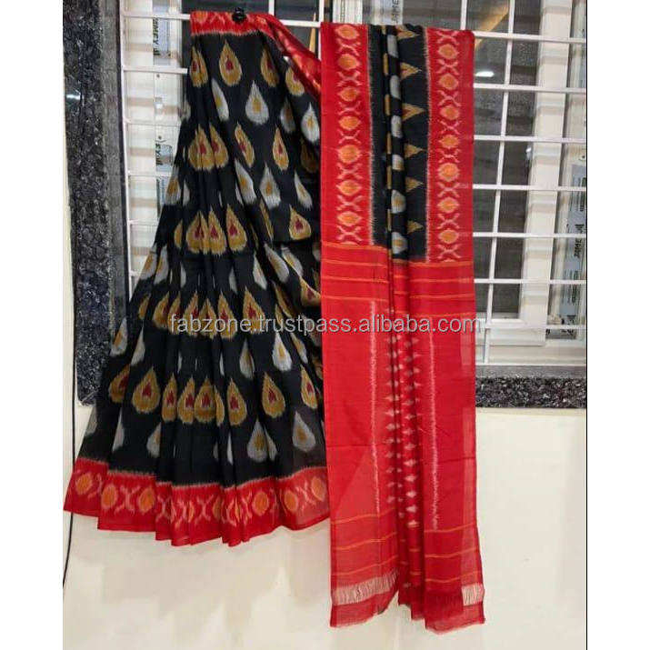 ผ้าลินินพิมพ์ลายดิจิตัลชุดส่าหรีสีเหลืองและสีแดงชุดปาร์ตี้