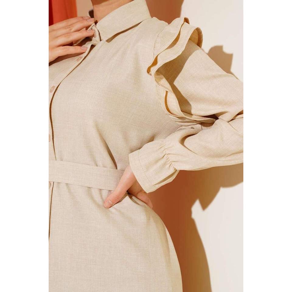 ชุดผ้าลินินพร้อมไหล่ระบายสีเบจ