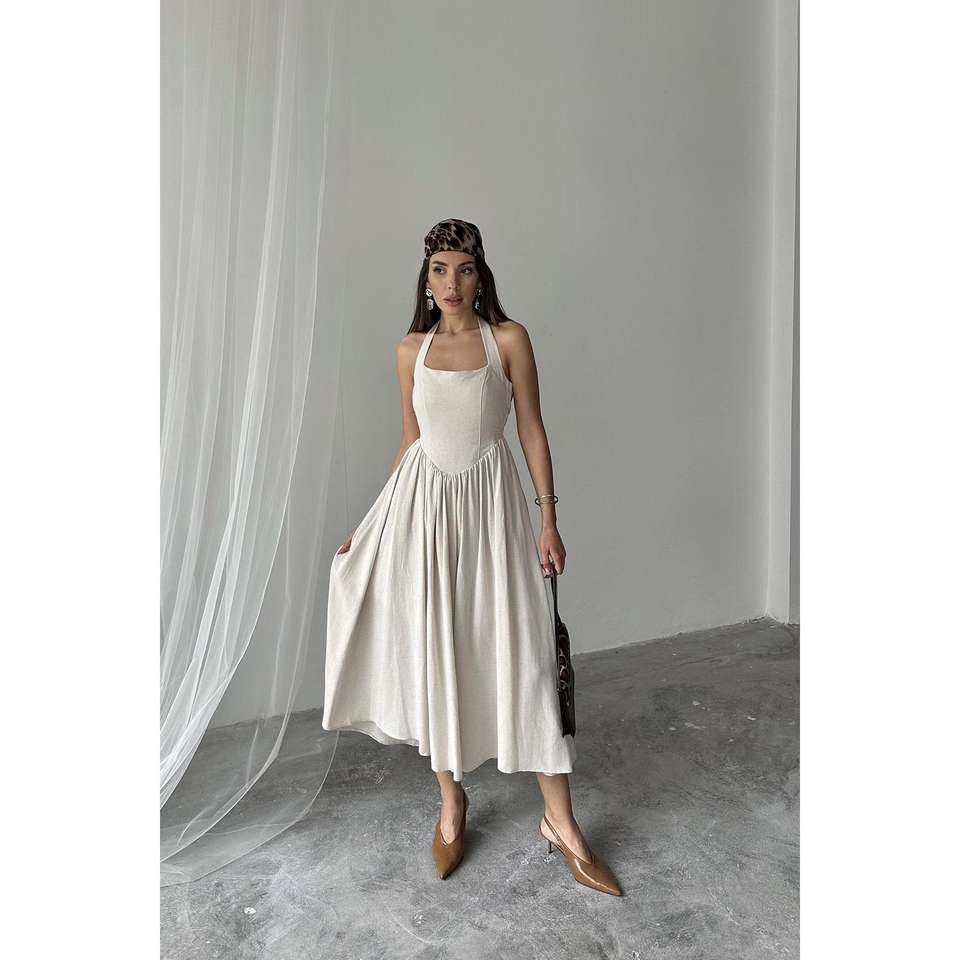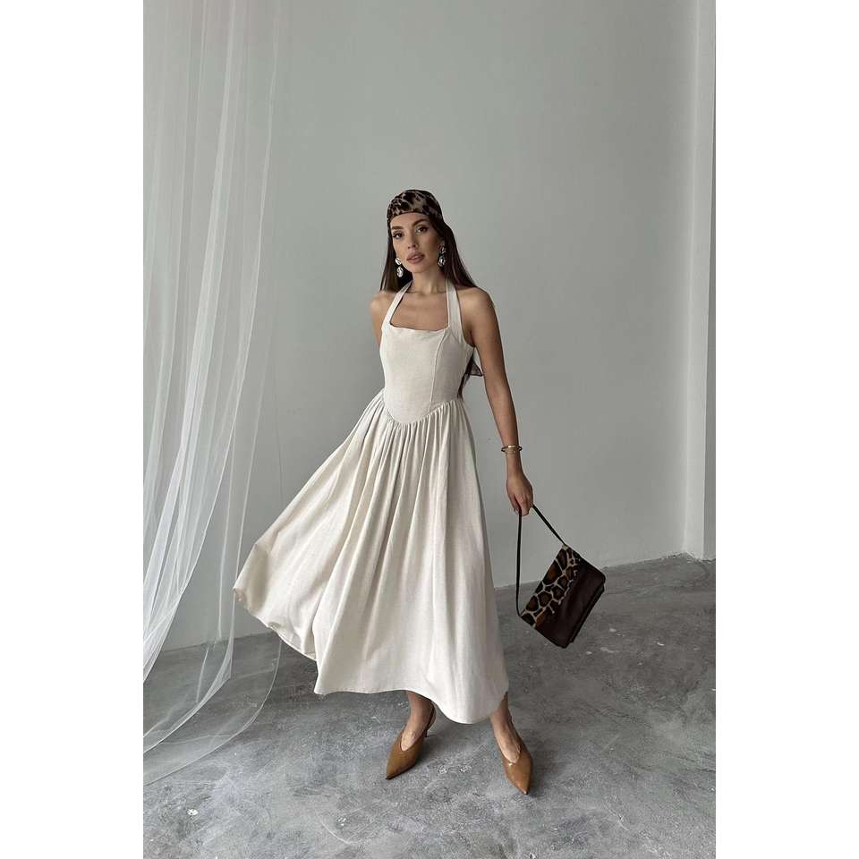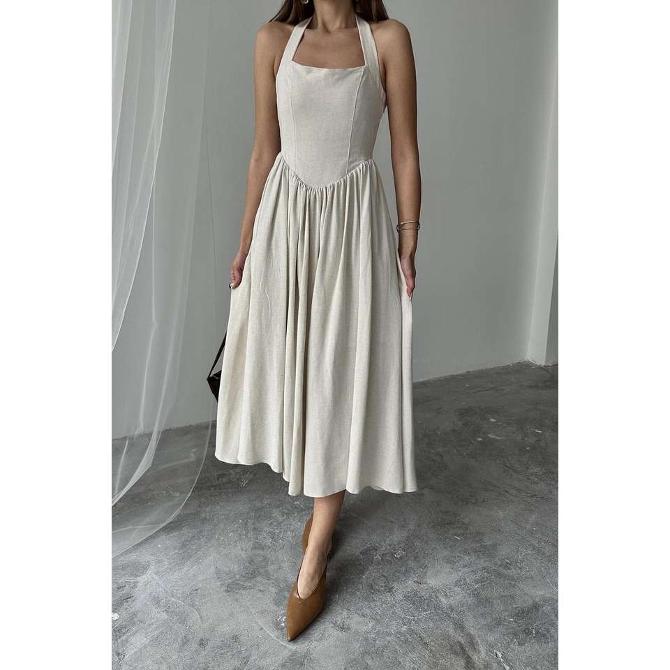 เดรสผ้าลินินคอ halter เอวทรงเอ ทรงเอไลน์ เปิดหลัง ระบายอากาศได้ดี สวมใส่สบายๆ
