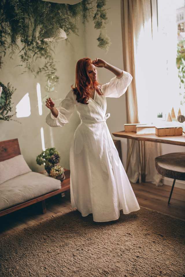 White Linen Wrap Maxi Dress