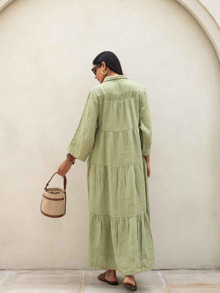 Linen Maxi Dress with Belt Loose Fit A-Line Summer Dress Minimalist Long Dress Casual Linen Outfit Elegant Everyday Clothing