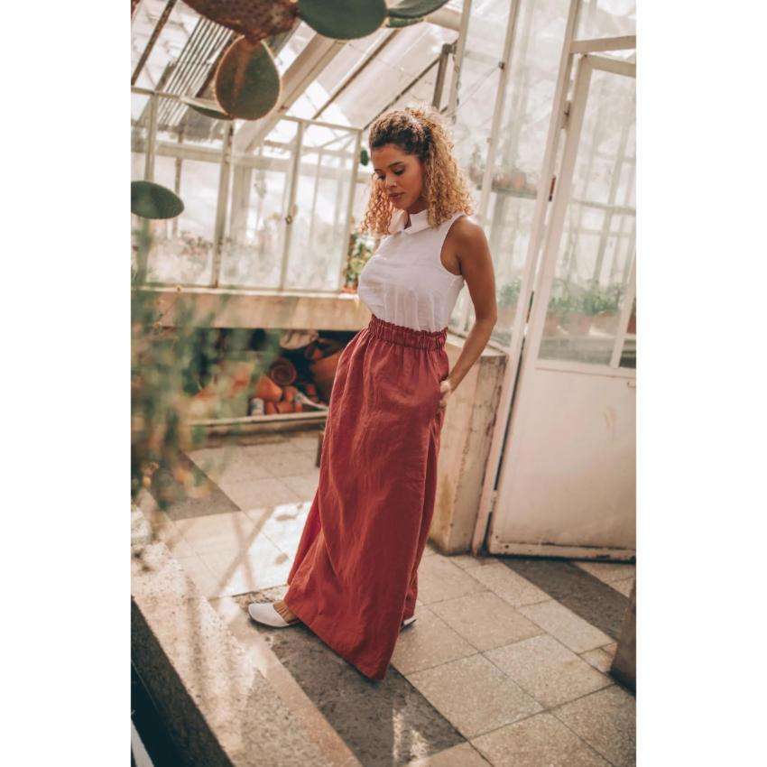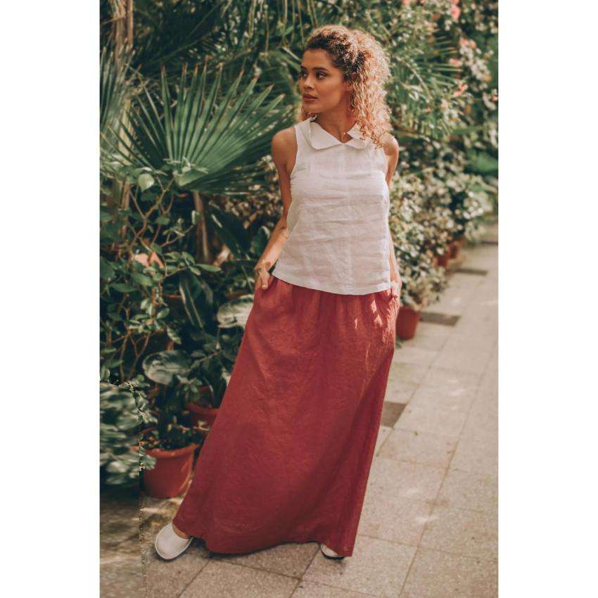 กระโปรงแม็กซี่ผ้าลินินแขนยาวชุดเสื้อผ้าสไตล์โบฮีเมียนสำหรับผู้หญิงชุดเดรสสองชิ้นเอวธรรมชาติเรียบง่ายเป็นมิตรต่อสิ่งแวดล้อม