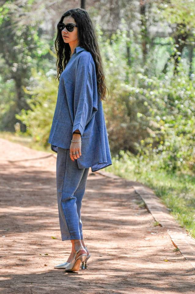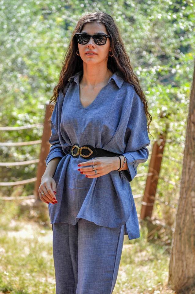 ชุดนอนผ้าลินินพิมพ์ลายสำหรับผู้หญิง, ชุดนอนผ้าลินินโมดอลคอ V ทรงหลวมใส่สบายหรูหราเรียบง่าย