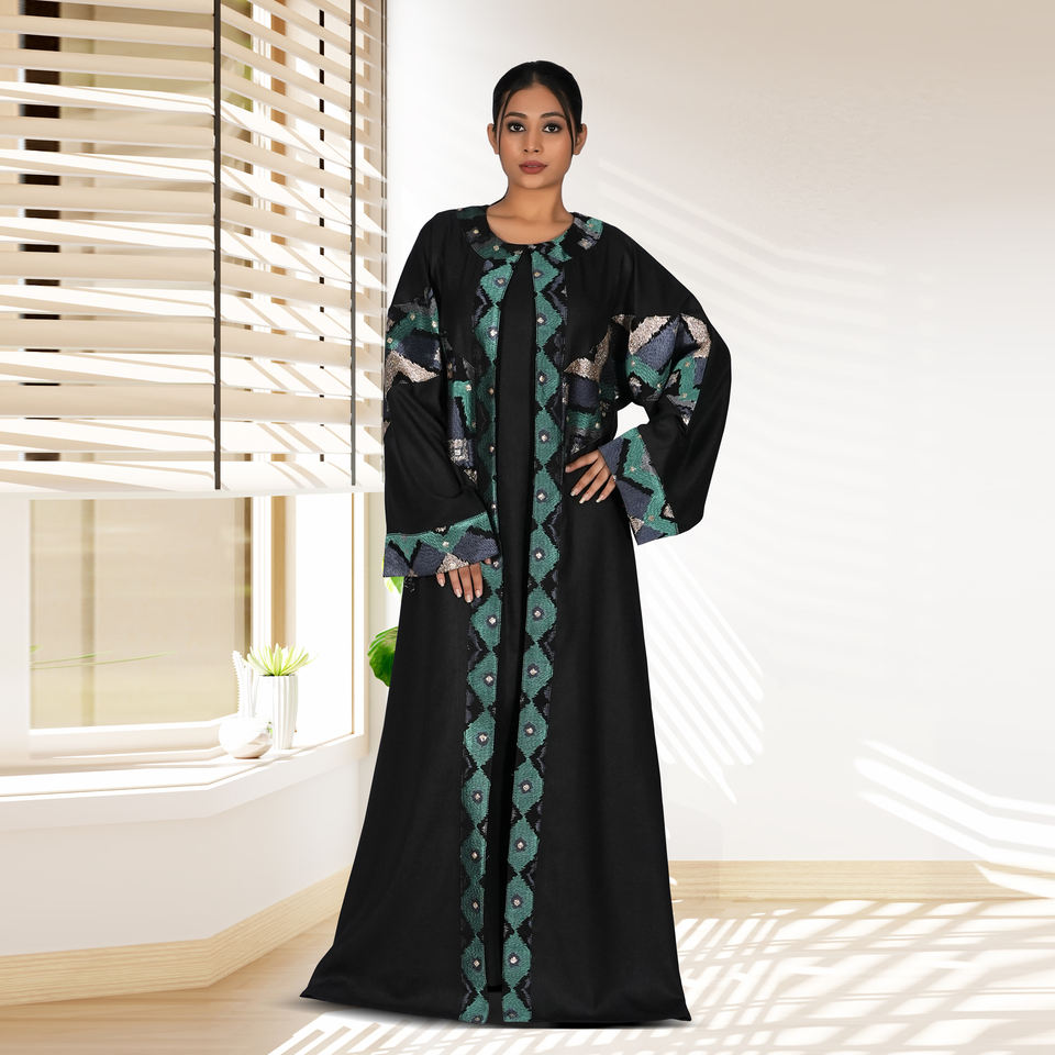 อาบายะผ้าลินินแบบเปิดด้านหน้า ดีไซน์ปักลายแบบดั้งเดิม ระบายอากาศได้ดี สง่างาม เรียบร้อย ยาวคลุมเท้า สไตล์อาหรับ สำหรับงานเลี้ยงตอนเย็น