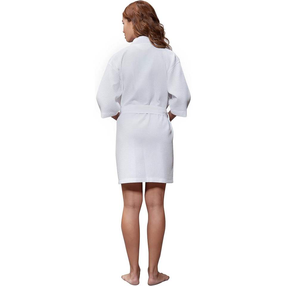 ชุดคลุมกิโมโนผ้าลินินลายวาฟเฟิลสำหรับผู้หญิง ความยาวระดับเข่า ชุดคลุมอาบน้ำสปา เนื้อผ้านุ่มสบาย ชุดนอนลำลองสำหรับสาวๆ ชุดคลุมอาบน้ำขายส่ง เสื้อผ้าผู้หญิง