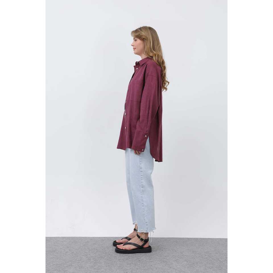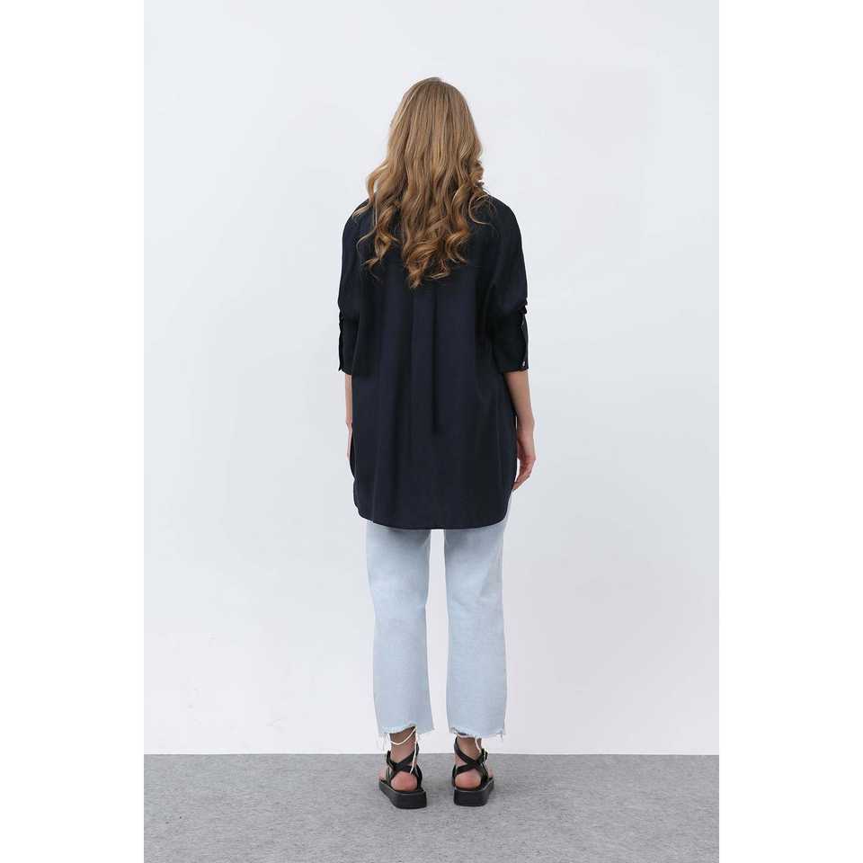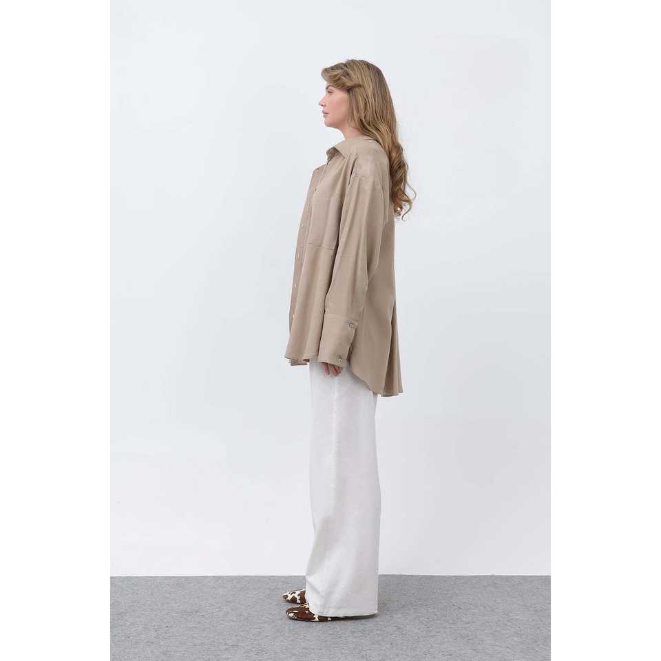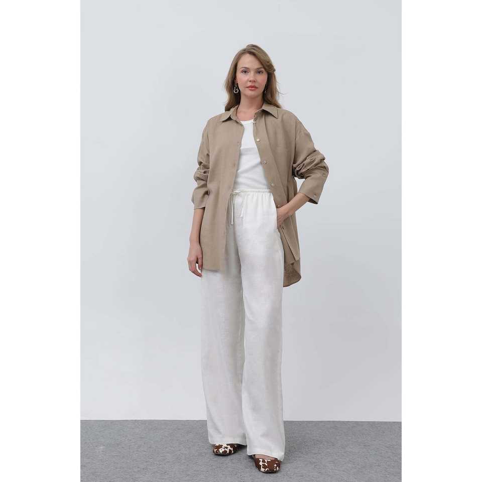 เสื้อเชิ้ตผ้าลินินผู้หญิง กระดุมหน้า สไตล์ลำลอง เรียบง่าย สีกากี เสื้อเบลาส์พื้นฐาน