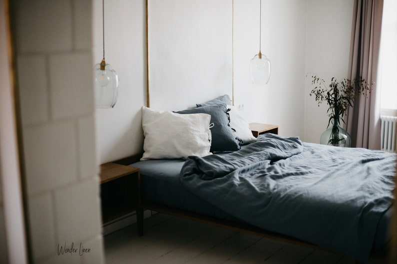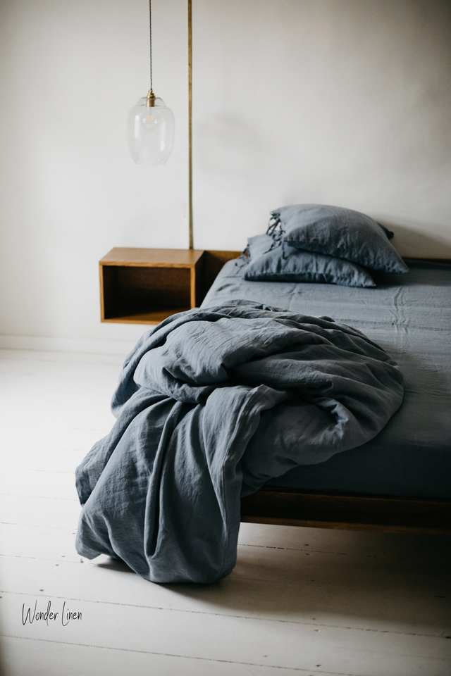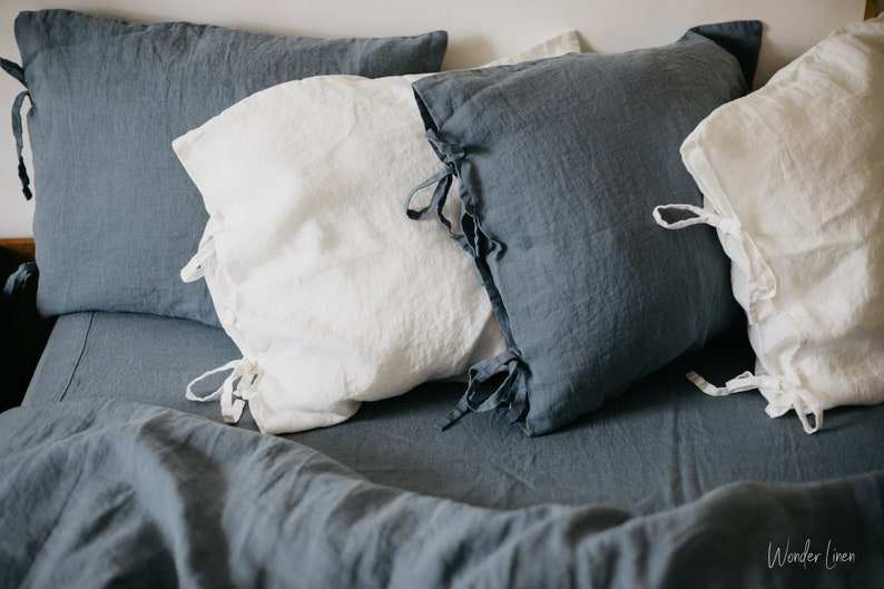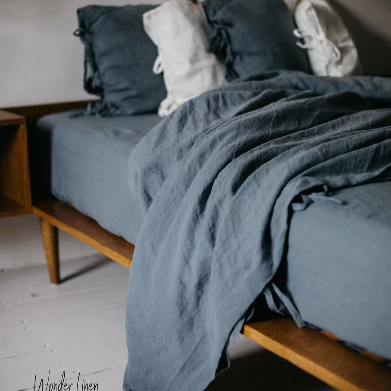 ชุดเครื่องนอนผ้าลินิน 100% สไตล์ Shabby Chic ขนาดคิงไซส์/ควีนไซส์ พร้อมปลอกผ้านวม ปลอกหมอน 2 ใบ ตกแต่งด้วยเชือกผูก สีฟ้าอมเทา/เทา/ชมพูอ่อน/ขาว