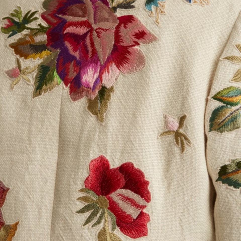 เสื้อโค้ทผ้าลินินผสมสำหรับผู้หญิง ปักลายดอกไม้ คอลเลคชั่นฤดูใบไม้ร่วง 2023 ไซส์พลัส แจ็คเก็ตทอผ้าแบบสั้น คอกลมมาตรฐาน สไตล์ลำลอง จัดส่งภายใน 7 วัน