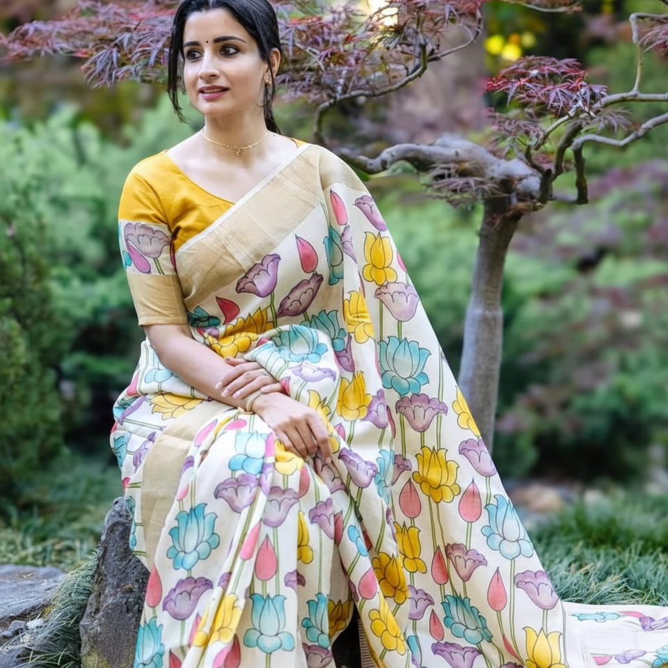 ผ้าซิ่นลินินลายพิมพ์ดีไซน์เนอร์บอลลีวูด ขอบผ้าประดับดิ้นทอง งานปักลายหรูหรา พรีเมียม คุณภาพเยี่ยม ทันสมัย แห้งเร็ว เหมาะสำหรับงานปาร์ตี้