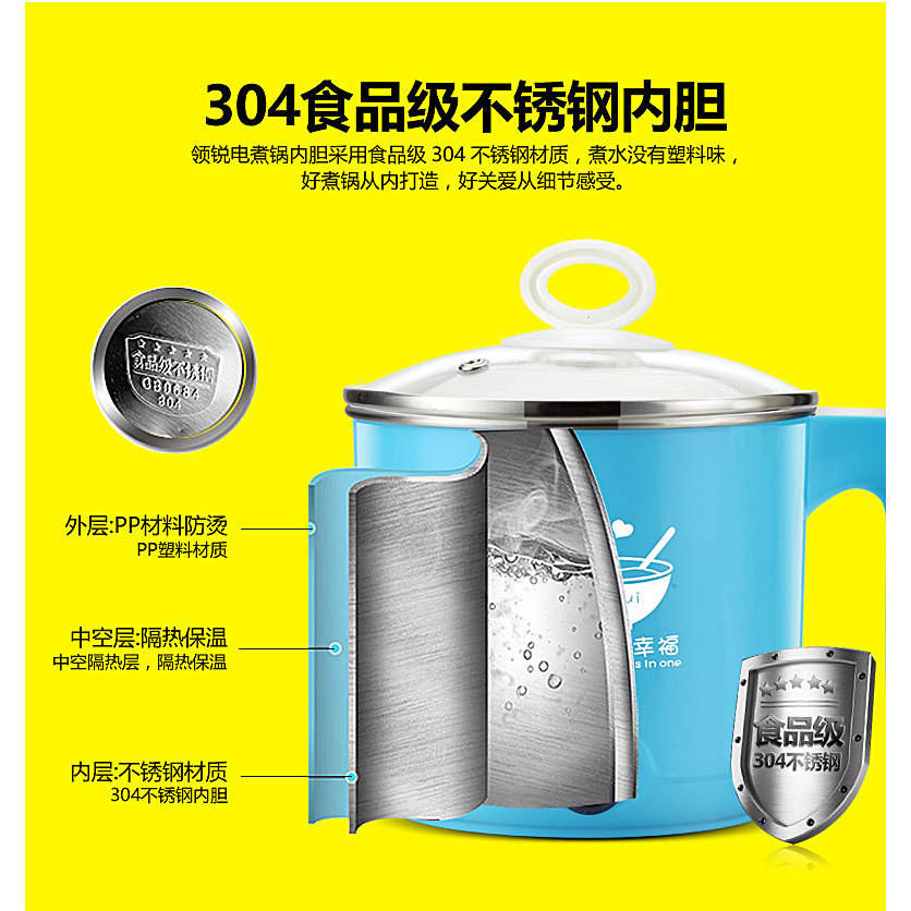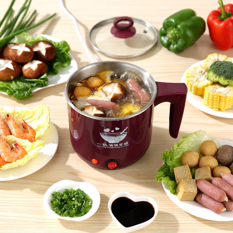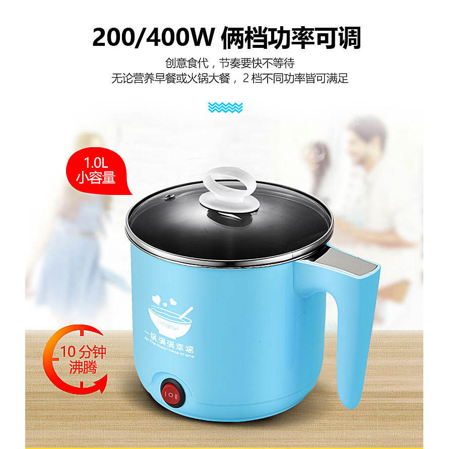 หม้อไฟฟ้าลิงรุ่ย 1 ลิตร สีชมพู เครื่องทำบะหมี่ขนาดเล็ก พร้อมฟังก์ชั่นป้องกันการไหม้แห้ง สำหรับใช้ในบ้านและนักเรียน