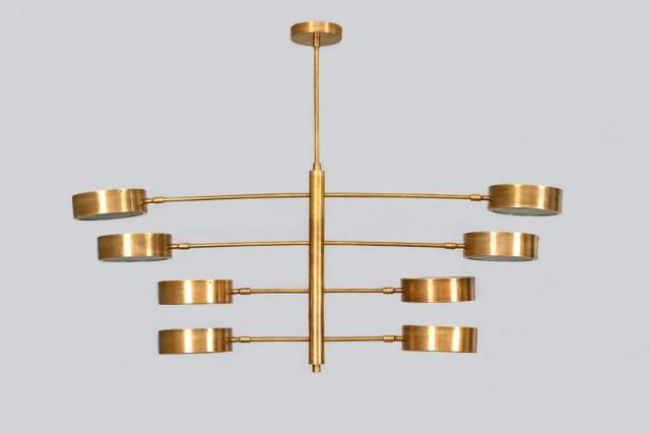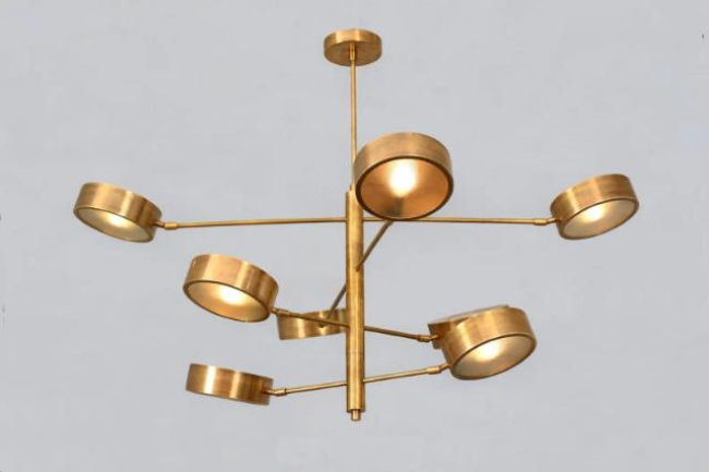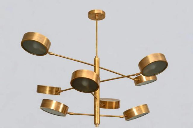 โคมไฟระย้าทองเหลือง 8 ดวง รุ่น Linus Starburst ทำมือ สไตล์โมเดิร์นกลางศตวรรษ เหมาะสำหรับบ้าน สำนักงาน โคมไฟเพดานสไตล์วินเทจ