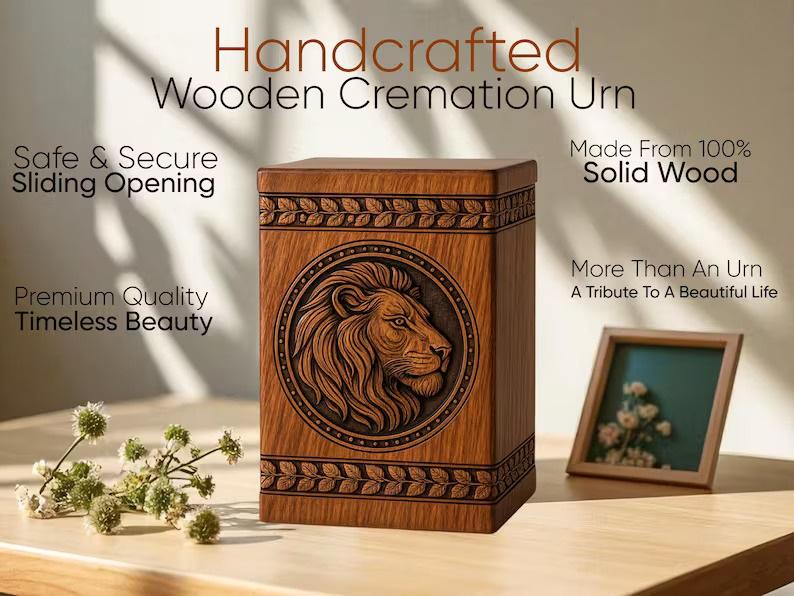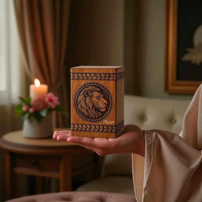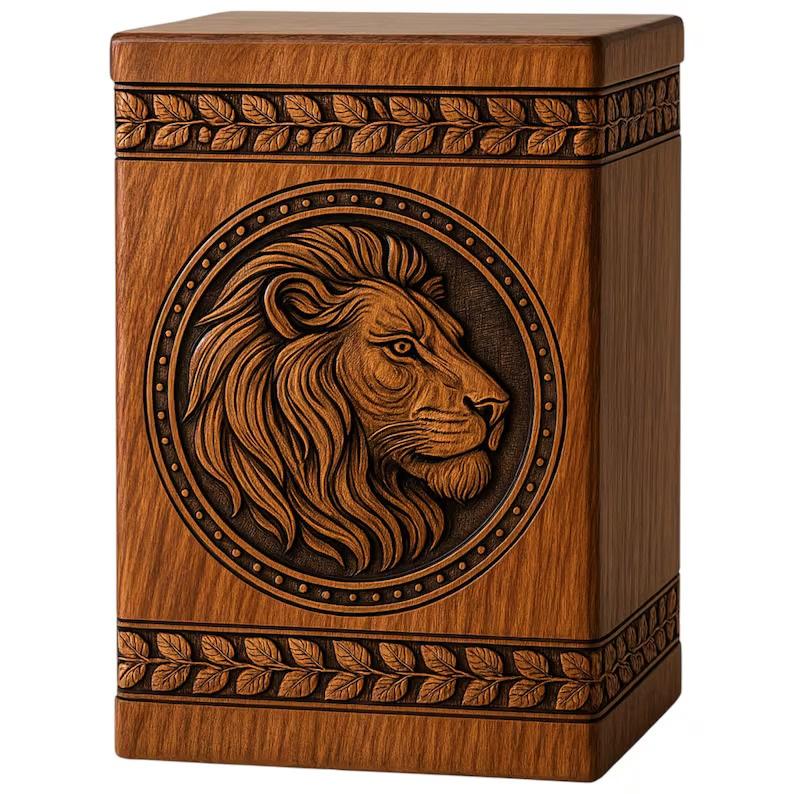 โกศไม้แกะสลักรูปสิงโต: ของที่ระลึกที่ระลึกแกะสลัก