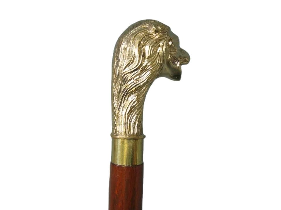 ไม้เท้าหัวสิงโตสไตล์วินเทจทำด้วยมือของขวัญสวยงามสำหรับวันเกิดสีน้ำตาลเข้มทำจากทองเหลืองและไม้