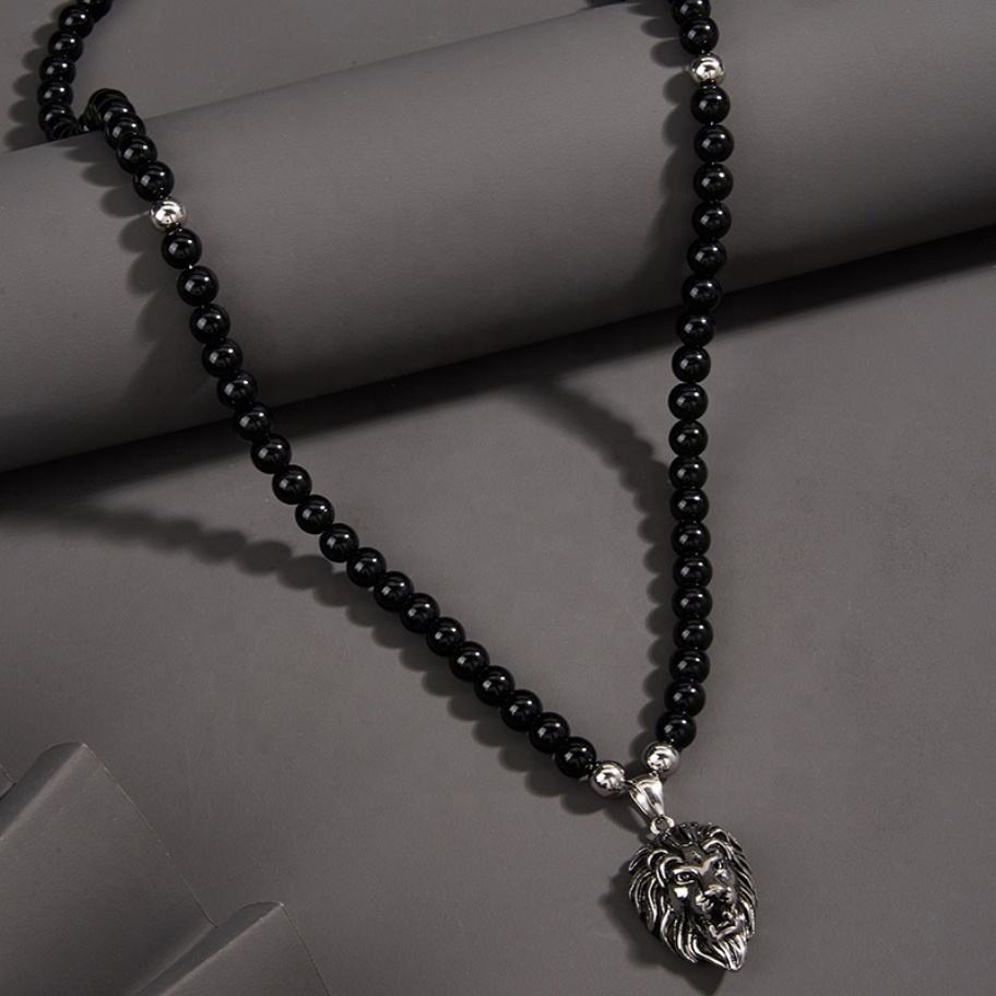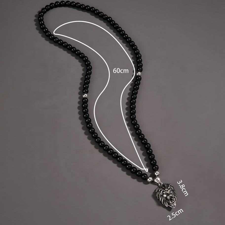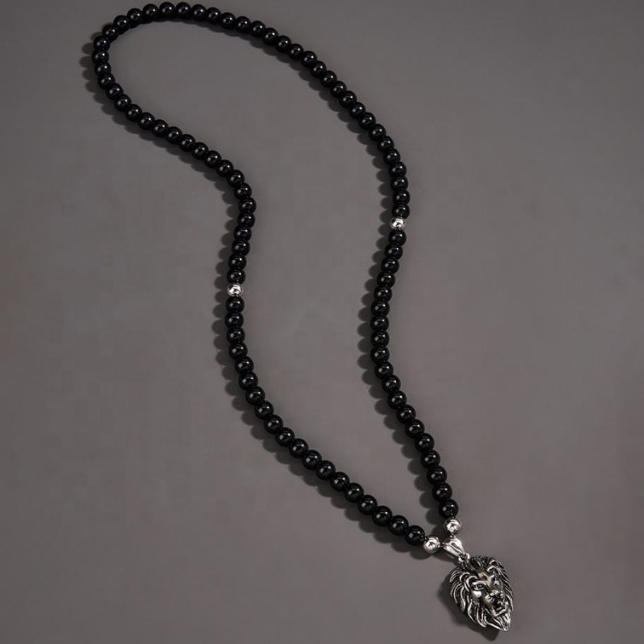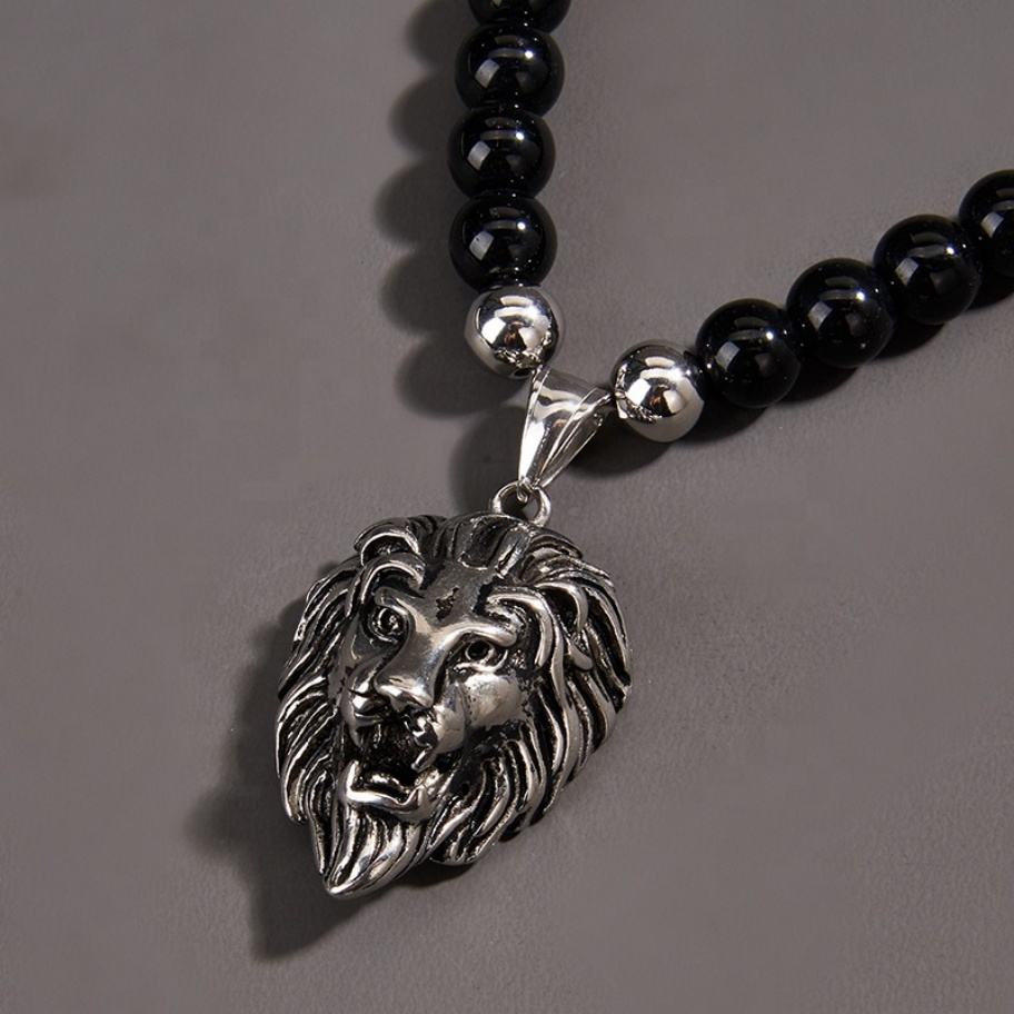 จี้หัวสิงโตประดับลูกปัด เครื่องประดับแฟชั่นสแตนเลสสำหรับผู้ชาย สไตล์ฮิปฮอป รูปสัตว์ สร้อยคอปี 2022