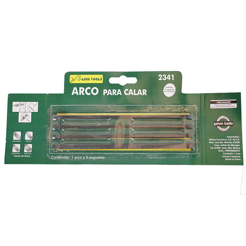 ชุดเครื่องมือ Lion Tools Arco Para Calar 2341 ประกอบด้วยโค้ง 1 ชิ้น และใบเลื่อย 5 ใบ ตัวโครงทำจากเหล็ก