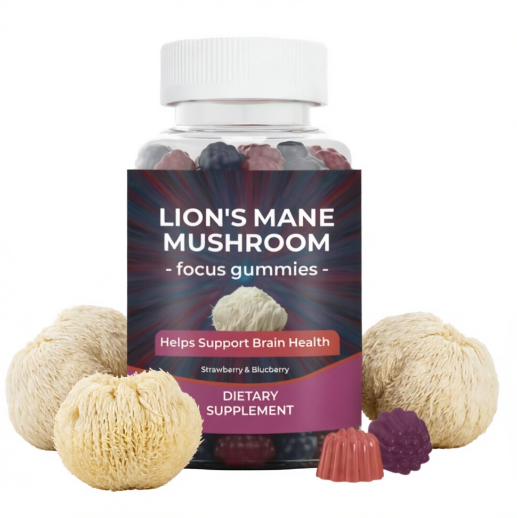 เยลลี่เห็ดแผงคอสิงโตผสมสตรอเบอร์รี่บลูเบอร์รี่60หมากฝรั่ง/ขวด2ชิ้นต่อการรองรับสมอง