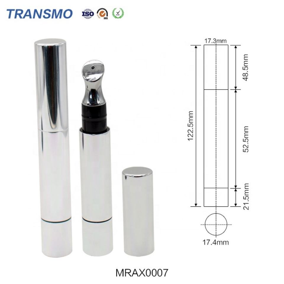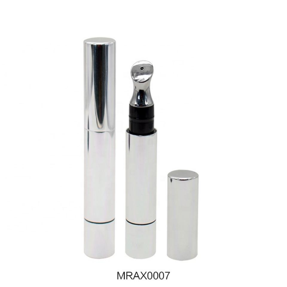 บรรจุภัณฑ์ลิปกลอสแบบปากกา บรรจุภัณฑ์เครื่องสำอางแบบดินสอ อลูมิเนียมสีเงิน ปากกาเปล่าแบบหมุนได้ ภาชนะเครื่องสำอางพร้อมหัวแปรง