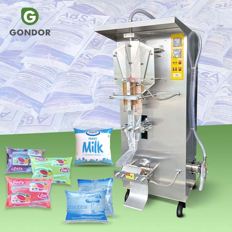 เครื่องบรรจุภัณฑ์อัตโนมัติสำหรับบรรจุน้ำผลไม้แบบซอง ขนาด 100 มล. และน้ำแร่แบบซอง