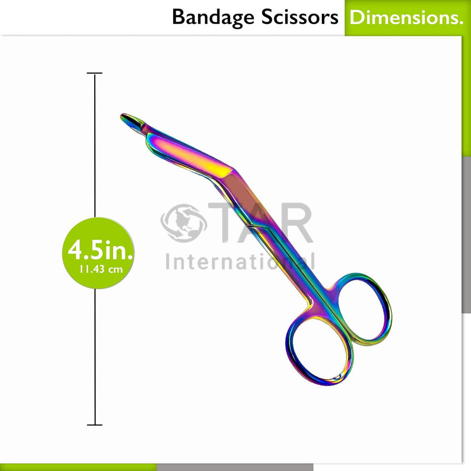 กรรไกรตัดผ้าพันแผลลิสเตอร์ ขนาด 4.5 นิ้ว ผลิตจากเหล็กกล้าไร้สนิมเกรดสูง ใบมีดเคลือบไทเทเนียมสีรุ้งหลากสี สำหรับแพทย์
