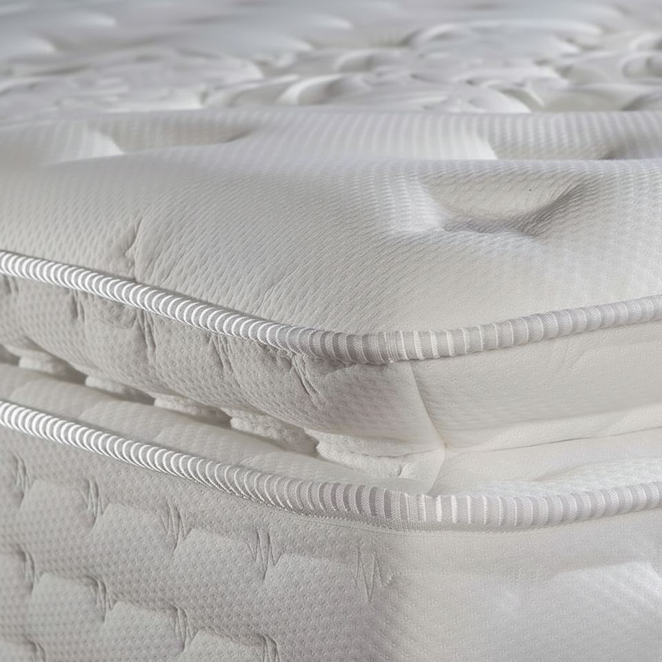 เตียงคู่พร้อมฐานเตียงและที่นอน พร้อมปลอกที่นอนแบบมีซิป หุ้มด้วยหนังยางแบบม้วนได้ รองรับสรีระ ดีไซน์สวยงาม