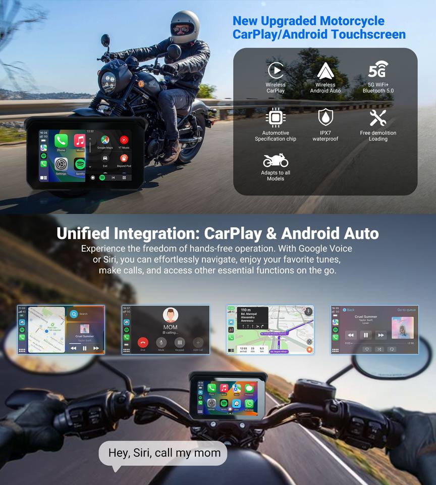 รถจักรยานยนต์ GPS Wireless Carplay/Android อัตโนมัติ