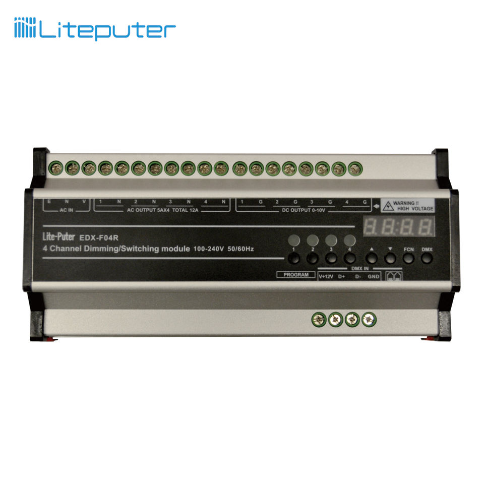 Liteputer สวิตช์หรี่ไฟแบบแมนนวล 4 ช่องสัญญาณ DMX/EDX 0-10V พร้อมระบบหรี่ไฟแบบ Leading-Edge รองรับโหลดสูงสุด 2880 วัตต์ กระแสไฟออก 12 แอมป์ รองรับ 99 โซน และ 6 ฉาก