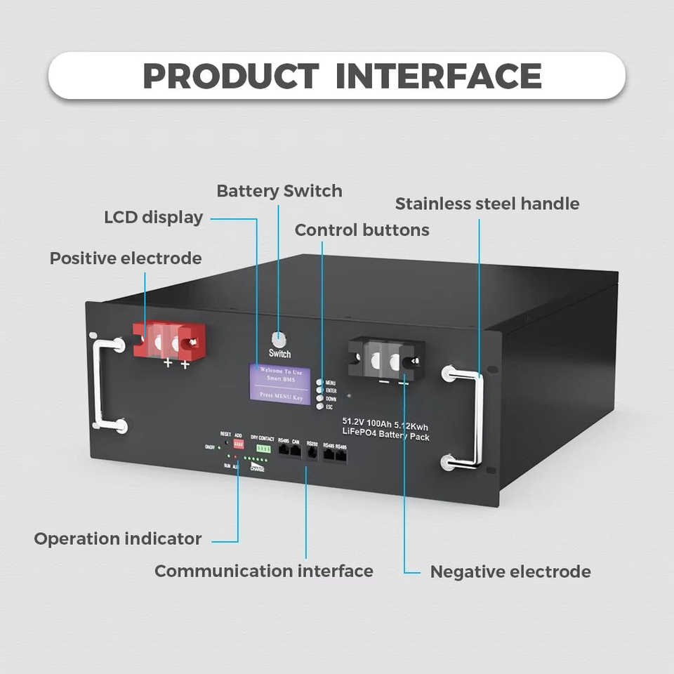 ชั้นวางแบบปริซึม48V 50Ah แบตเตอรี่ลิเธียม Lifepo4 100Ah 3U 2.5Kwh 5U 200Ah 150Ah