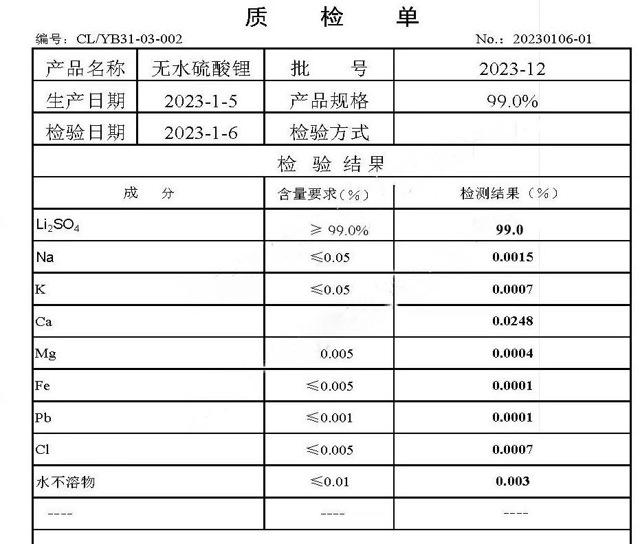 Lithium Sulfate Li2SO4 10377-48-7 CAS Powder Appearance