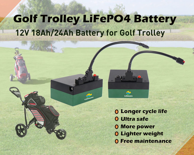 แบตเตอรี่รถเข็นกอล์ฟลิเธียม LiFePO4 24AH 18AH 12V