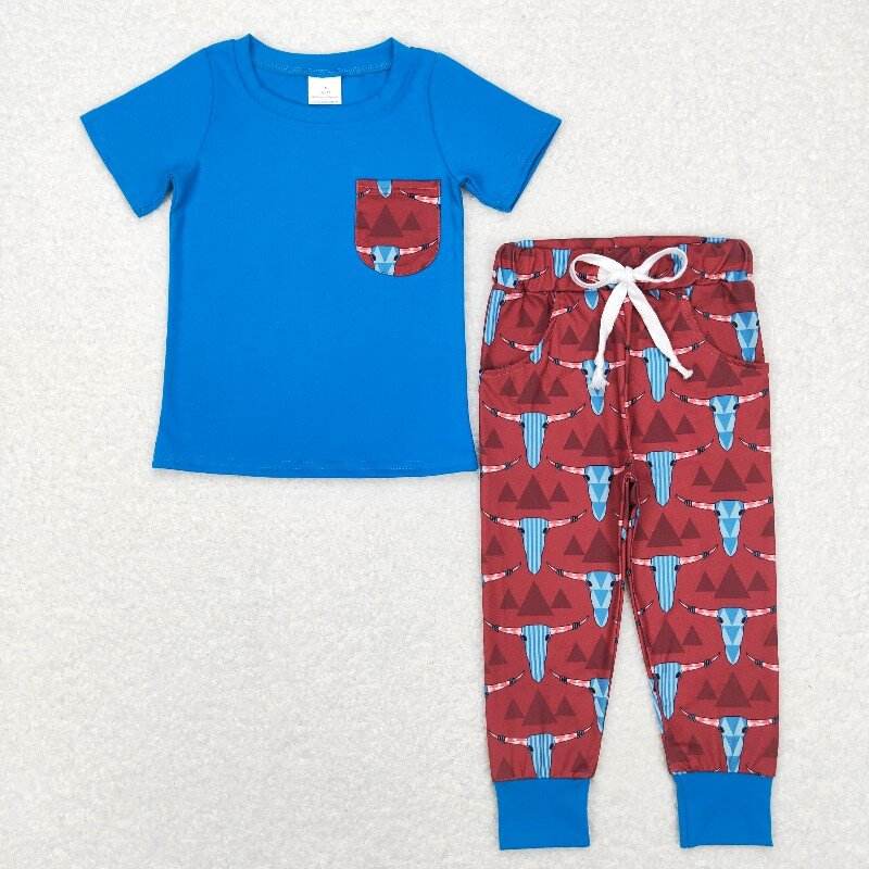 ชุดเสื้อผ้าสำหรับเด็กผู้ชายวัยหัดเดินพิมพ์ลายวัวสีฟ้าแบบบูติก