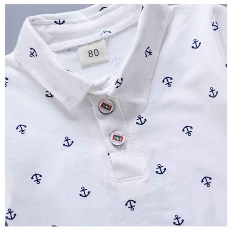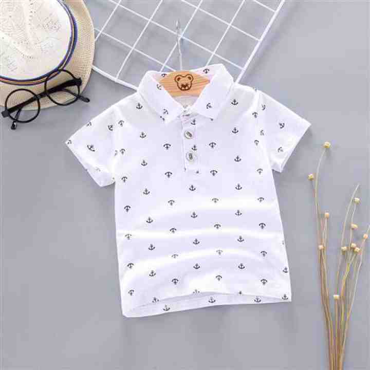 เสื้อโปโลสีขาวสำหรับเด็กผู้ชาย สไตล์ใหม่ แฟชั่นฤดูร้อน ชุดทางการสำหรับใส่ไปโรงเรียน