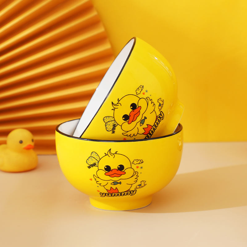 ชามเซรามิกรูปเป็ดน้อยน่ารักชุดเครื่องใช้บนโต๊ะอาหารลายหัวใจเด็กน่ารักอย่างยั่งยืนเหมาะสำหรับการรับประทานอาหารในครัวเรือน