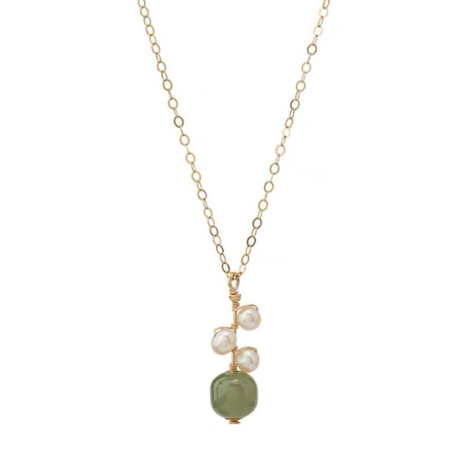 สร้อยคอประดับมุกน้ำจืดและเพชร ดีไซน์เรียบหรู ประดับทอง 14K รุ่น Little Flower Elegant สไตล์แฟชั่นออนไลน์สีแดง
