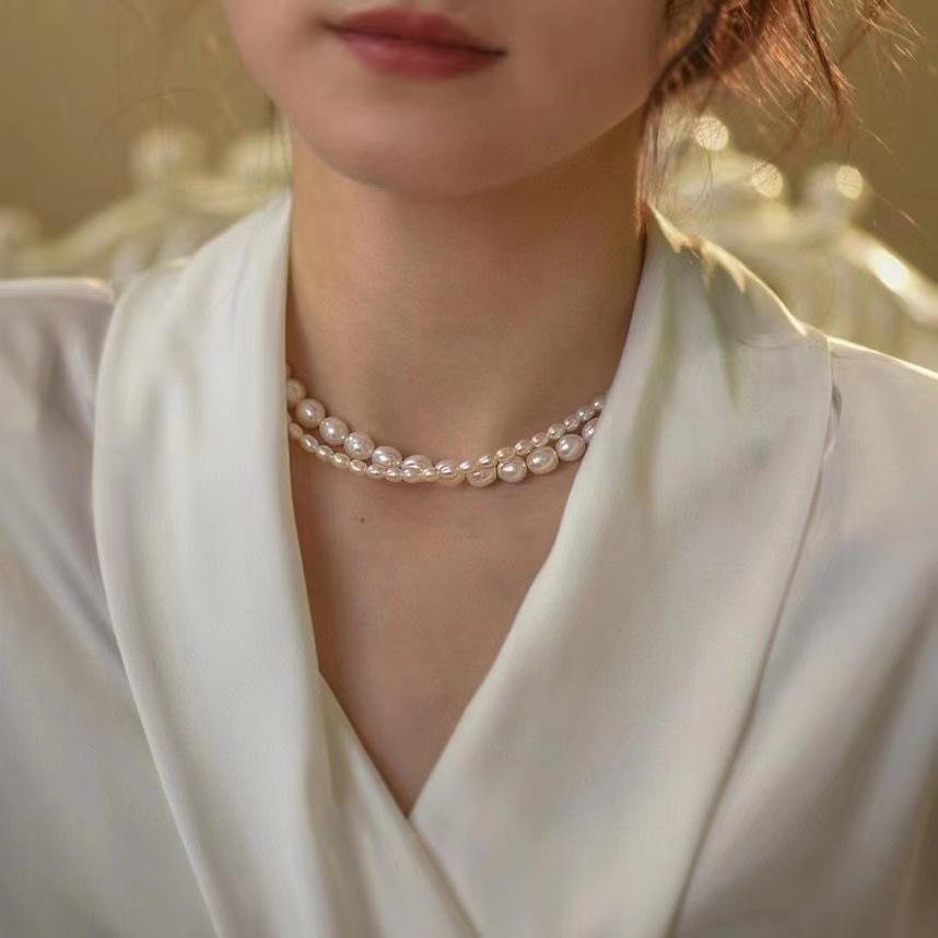 สร้อยคอไข่มุก Little Fresh Lulu Baby S925 แบบซ้อน พร้อมไข่มุกขนาด 8-9 มม. ของขวัญเทศกาลสำหรับเด็กเล็ก