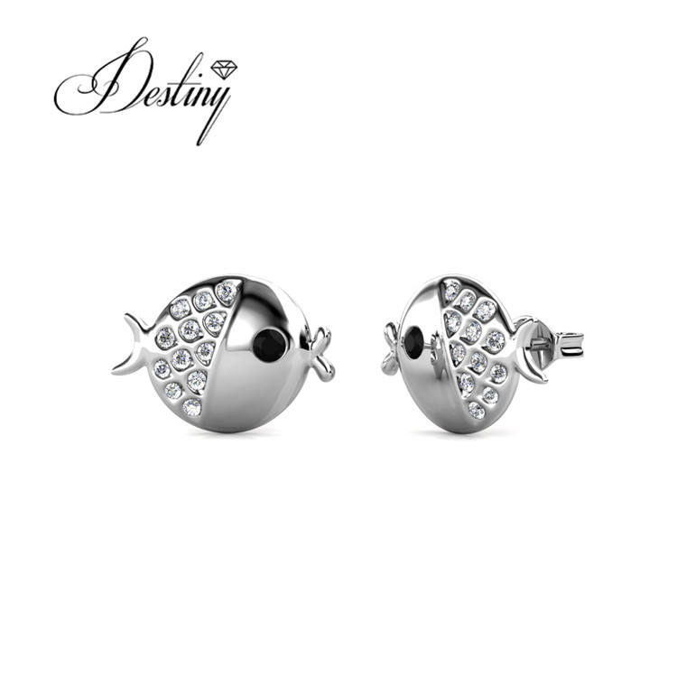 Fugu ต่างหูรอยจูบรูปปลาเดซินีประดับคริสตัลสวารอฟสกี้18K ชุบทองเครื่องประดับน่ารักชุดอุปกรณ์เสริมสำหรับมหาสมุทร
