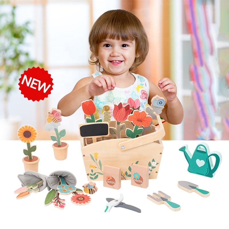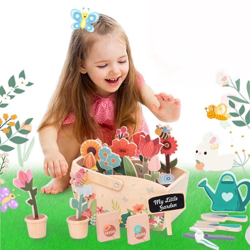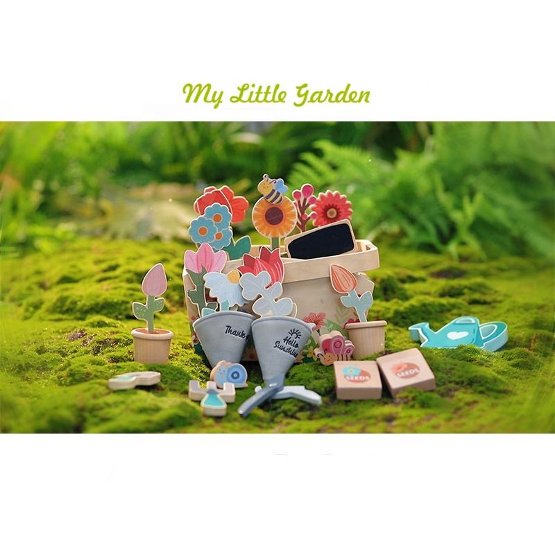 ชุดของเล่นสวนขนาดเล็ก บทบาทสมมติเป็นคนสวน ของเล่นจำลองต้นไม้ 30 ชิ้น บล็อกไม้ ของเล่นจับคู่ บทบาทสมมติ
