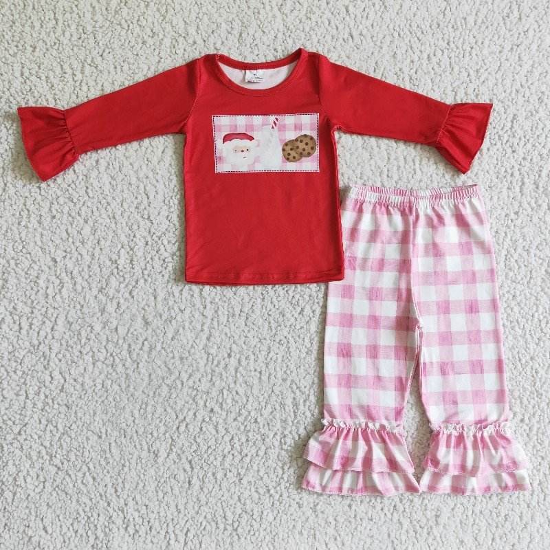ชุดเสื้อผ้าชุดนอนแขนยาวสำหรับเด็กผู้หญิงชุดเสื้อผ้าพิมพ์ลายคริสต์มาสสีฟ้าสำหรับฤดูใบไม้ร่วง