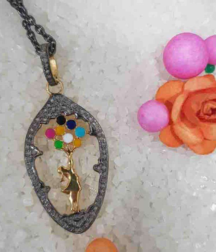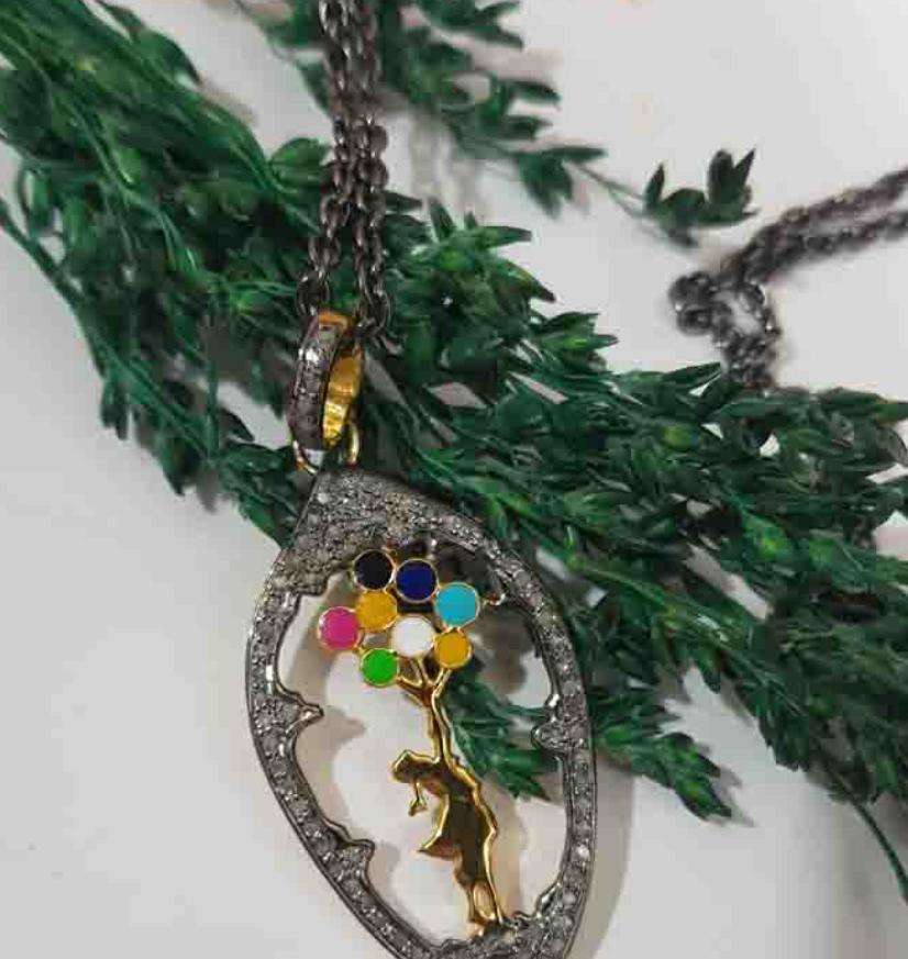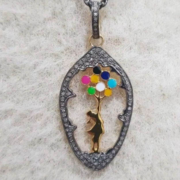 จี้เพชรเม็ดเดี่ยวทรงวินเทจสำหรับเด็กผู้หญิง เงินแท้ 925 ชุบโรเดียมดำ ประดับเพชรธรรมชาติแบบฝัง น้ำหนัก 6.30 กรัม ขนาด 35x20 มม. สำหรับงานแต่งงาน